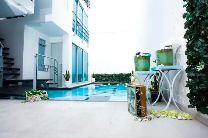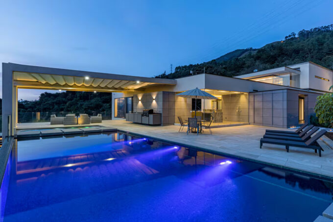 The Medellin palace features a huge semi-olympic sized pool, jacuzzi and multiple lounge areas.